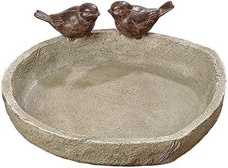 Whw Whole House Worlds Bird Bath With 2 Sparrows Beige Stone Finished Basin And Brown All Weather Poly Resin 8 25 Inches Diameter 21cm Patio Lawn Garden